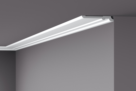 Flot hvid fodliste med runding for oven og for neden samt en bue på siden.