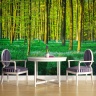 Flot fototapet med en grøn bøgeskov med bøgetræer og flot skovbund med små fine blå blomster.