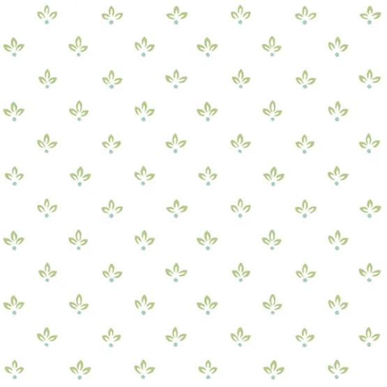 Hvid tapet med tre-bladet vifter i lys grøn og blå.