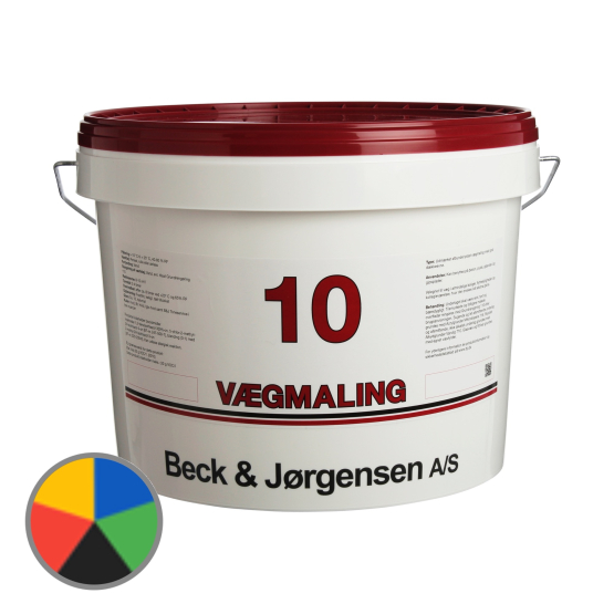 Vægmaling glans 10 fra Beck & Jørgensen har en god dækkeevne og rækker ca. 8-10M2 pr. liter.